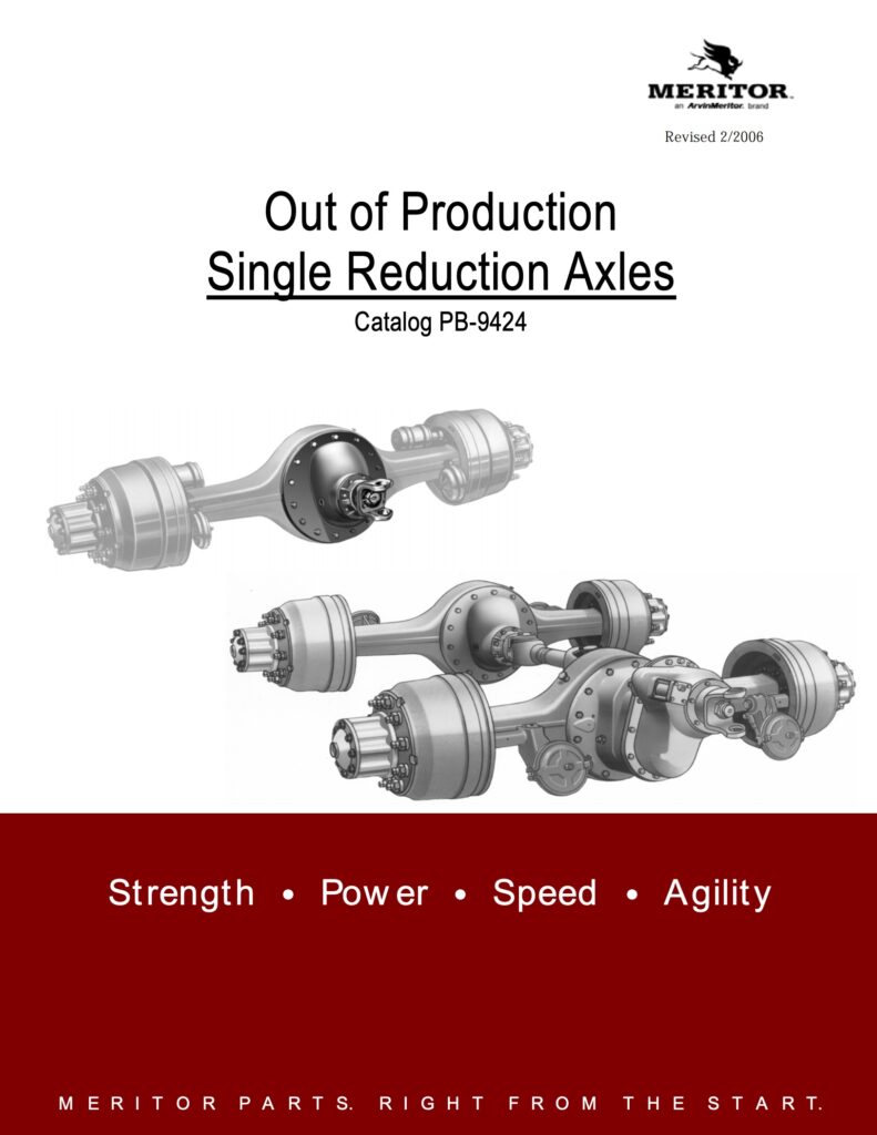 The Meritor Out of Production Single Reduction Axle Catalog (PB-9108) is a comprehensive parts reference for older axle models, including the 140, 141, 143, 144, 145, 155, 160, 161, 164, and 185 series. It provides detailed exploded views and parts lists for carriers, differential cases, and axle shafts. 1. Technical Specifications & Carrier Identification The …